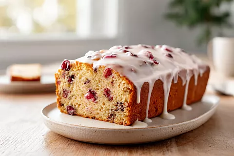 Простой кекс с клюквой и лимонной глазурью — идеальный праздничный десерт.