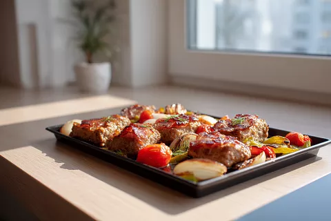 «Ленивые» котлеты из фарша в духовке: запекла вместе с овощами и беконом, и всё пропиталось дымным ароматом