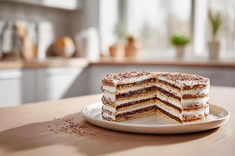 Торт «Мгновенный» на сгущёнке: коржи пропитываются за полчаса, а крем из сметаны делает его тающим во рту