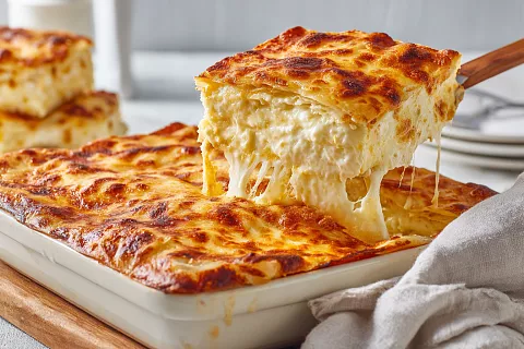 Ленивая ачма из лаваша: двойной сыр и пропитка дают потрясающую сочность и тягучий сырный слой