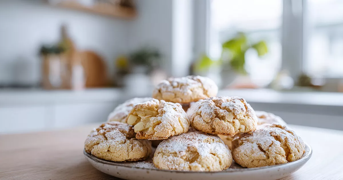 Простые и невероятно вкусные яблочные печенья на кефире — хрустящие снаружи, мягкие внутри, с ярким яблочным вкусом.