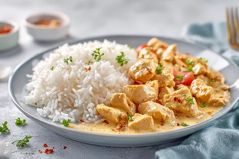 Рис рассыпчатый без хлопот и сочная курица в сливочном соусе: ужин за 30 минут