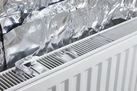 Для реализации лайфхака вам понадобится фольгированный материал — например, пенофол или обычная плотная фольга на картоне. Важно разместить экран блестящей стороной к комнате, между стеной и радиатором, оставив зазор для циркуляции воздуха.