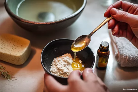 Рисовая мука + мёд + яблочный уксус. Смешайте 3 ст. л. рисовой муки, 1 ст. л. мёда и 2–3 капли яблочного уксуса. Замочите стопы в тёплой воде на 10 минут, нанесите скраб, помассируйте и смойте. Повторяйте 2–3 раза в неделю — кожа станет мягкой и чистой.