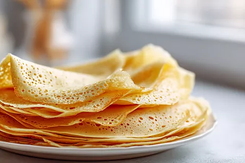 Тонкие блинчики без сухих краёв: кипяток и правильный огонь меняют всё. Нежные, эластичные, в дырочку