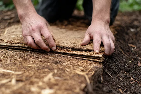Картон + мульча — отличное укрытие для клубники, чеснока, многолетников. Укладывают картон, сверху сено или листья — тепло, влага сохраняется, почва не промерзает. Весной можно оставить как мульчу.