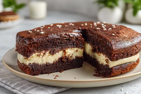 Шоколадный пирог с творожной начинкой на сковороде: нежный, ароматный, с бананом и без духовки