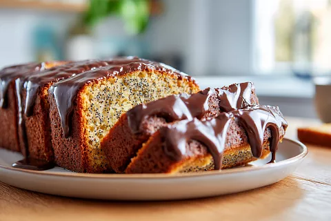 Пышный маковый пирог с насыщенной шоколадной глазурью получается мягким внутри и с блестящей пропиткой сверху — настоящий домашний десерт.