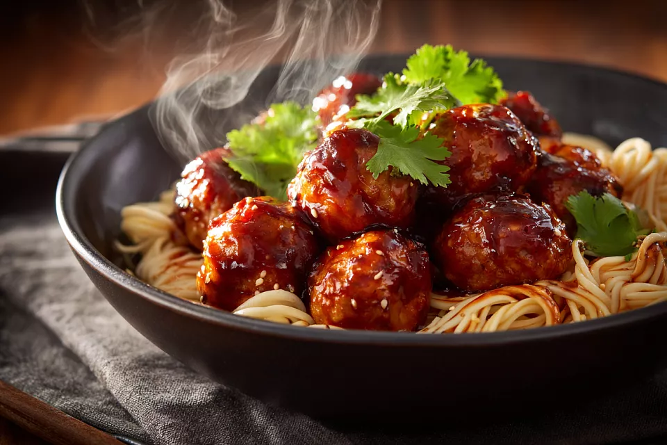 Фрикадельки в азиатском соусе с яичной лапшой: нежные, ароматные и с волшебным вкусом