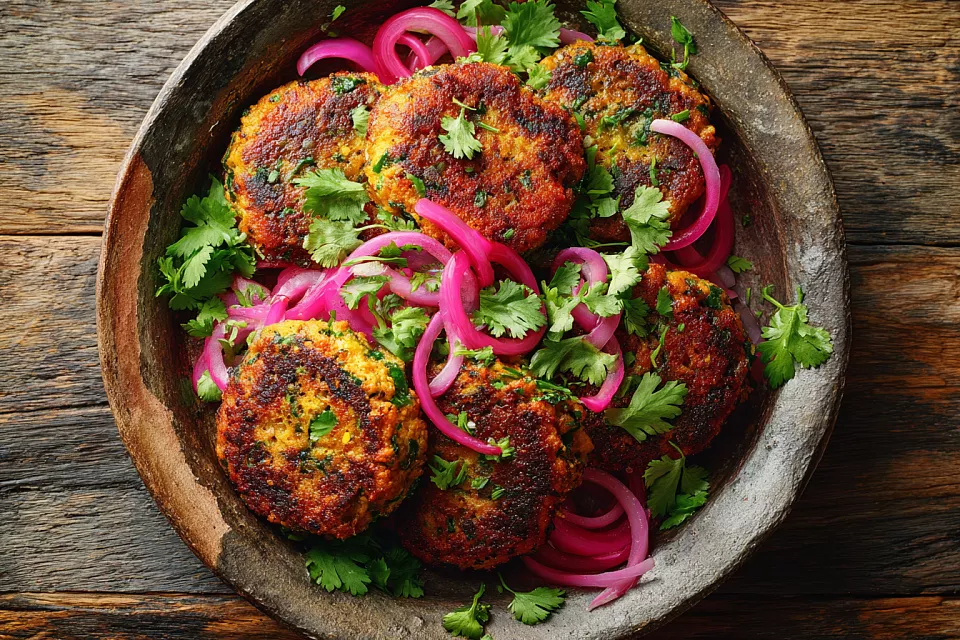 Готовые котлеты подаём горячими с маринованным луком. Гарнир не нужен — они и так полноценное блюдо. Получаются сочные, ароматные и очень сытные.