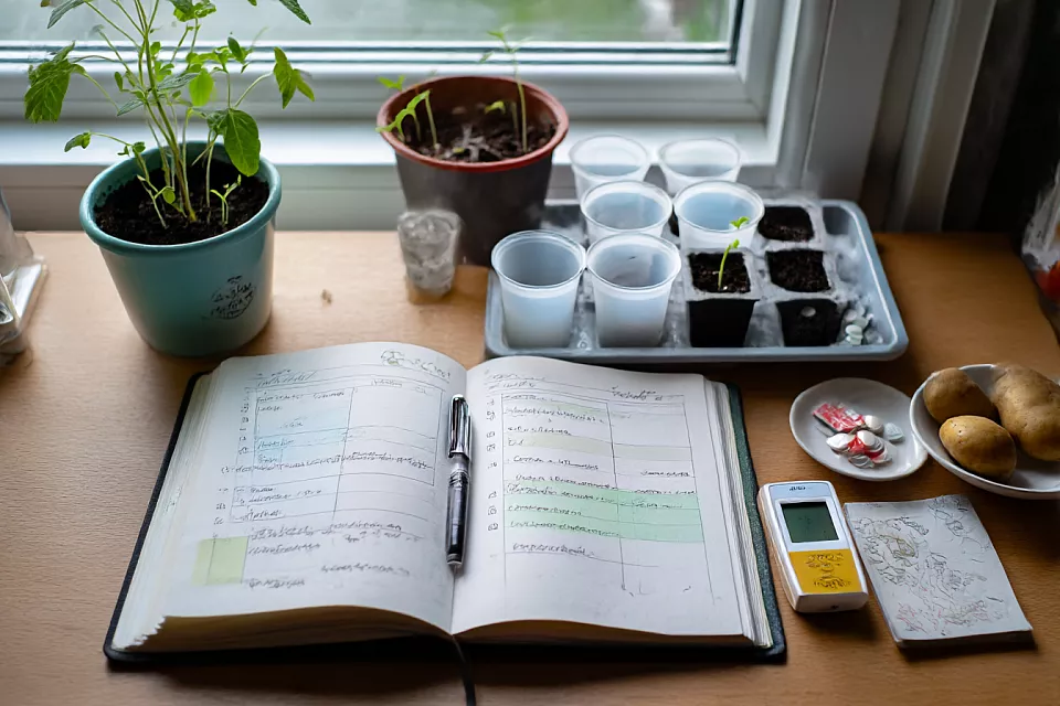 Первое: заводим тетрадь и записываем всё, когда посеяли, полили, покормили, как рассада выглядит через неделю.