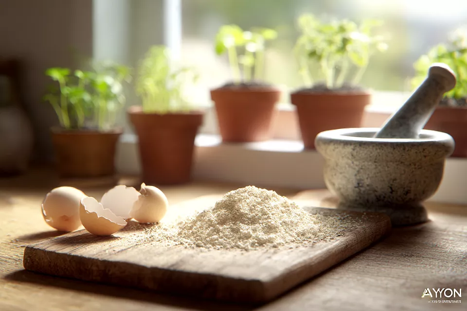 Порошок просто рассыпают вокруг растения тонким кольцом и слегка обновляют примерно раз в месяц. Он даёт почве кальций и может служить механической преградой для улиток и слизней. Но не сыпьте «от души» наугад: если почва и так щелочная, избыток таких добавок может мешать некоторым культурам.