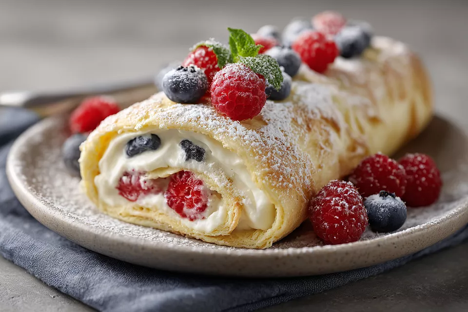 Этот десерт — настоящий финский хит. Готовится проще простого, без заварного теста и бисквита, а получается мягкий, ароматный рулет с кремом и ягодами.