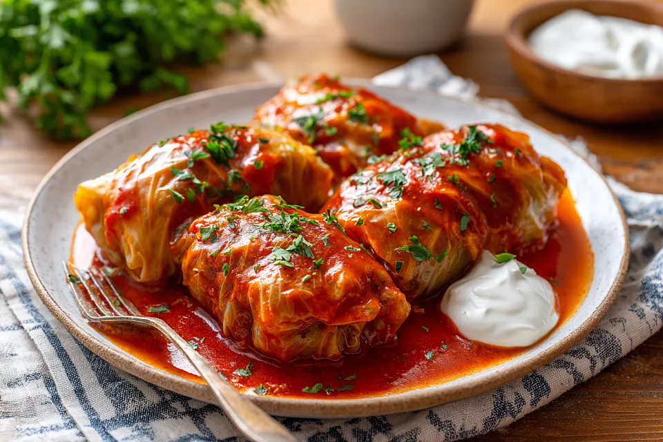 Голубцы получаются сочными, с насыщенной подливой и потрясающим вкусом. Подаём горячими со сметаной или горчицей. Обязательно попробуйте — это настоящий домашний хит.