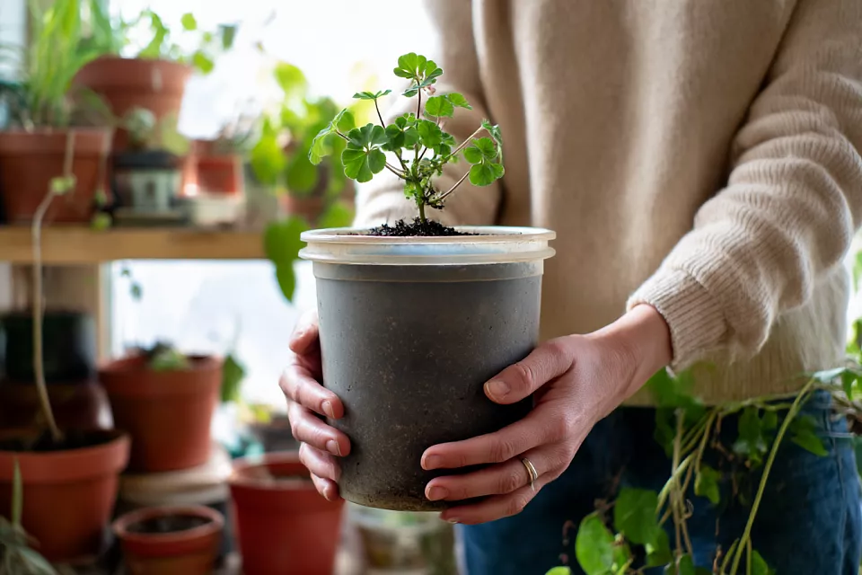 Есть простой выход — обычные пластиковые литровые ведёрки. Стоят копейки, а по размеру отлично подходят, например, под один черенок герани.