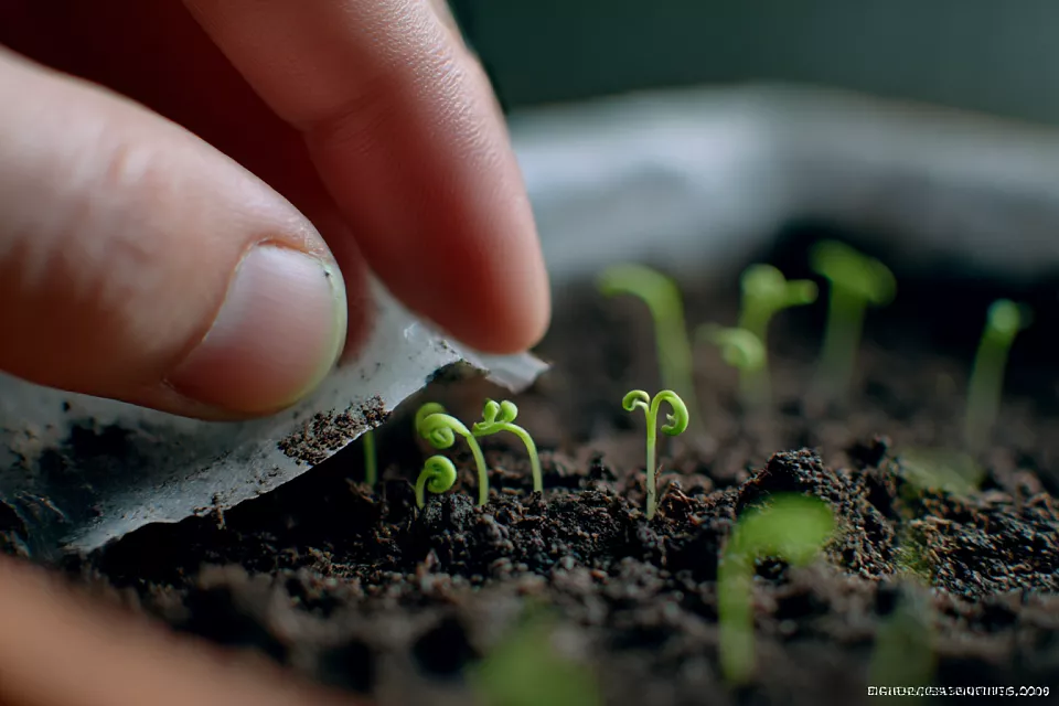 Подойдёт обычный грунт для рассады, рыхлый и не «ватный». Слишком торфяной и воздушный субстрат нежелателен: семечко твёрдое, ростку важно упереться, чтобы легче сбросить оболочку. Семена раскладывайте в контейнере рядками или как удобно, а сверху обязательно присыпайте слоем грунта примерно 1 см, затем увлажняйте.