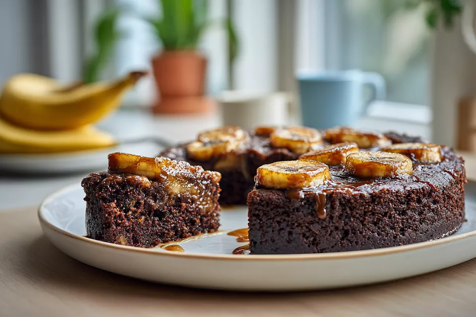 Пирог получается мягким, с насыщенным шоколадным вкусом и лёгкой карамельной корочкой от бананов. Подаём тёплым к чаю или кофе — просто объедение. Готовьте с удовольствием.