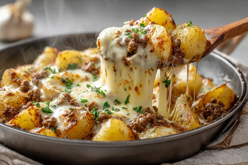 Когда хочется сытного и вкусного ужина без лишних хлопот — этот рецепт спасает. Всё в одной сковороде: сочный фарш, нежная картошка и тягучий сыр в сливочном соусе.