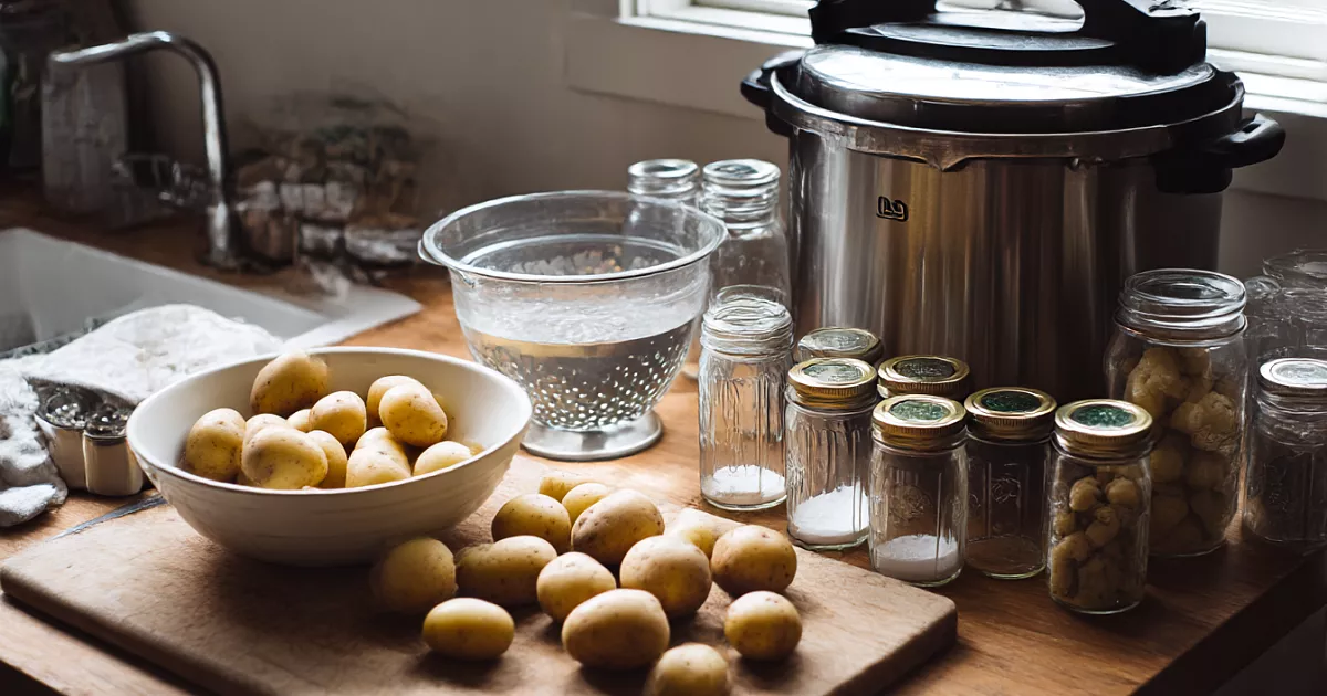 Картофель очищают, нарезают и плотно укладывают в банки без добавления воды. Стерилизуют в скороварке. Получается надёжная заготовка со сроком хранения до 5 лет.