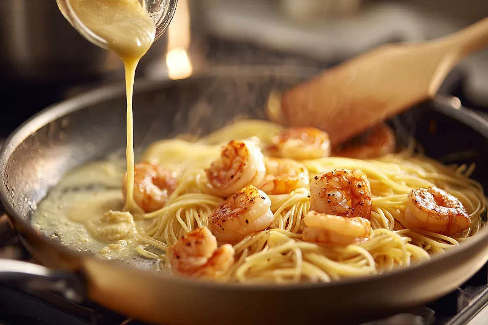 Паста с креветками в сливочном соусе: ресторанный вкус за 10 минут