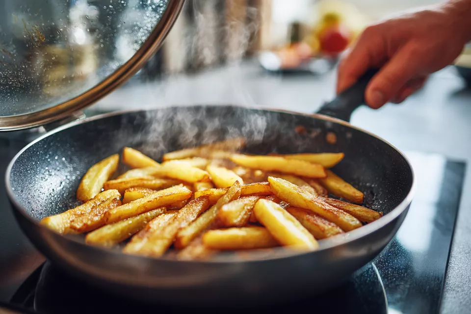 Этот способ жарки картошки — настоящий лайфхак: получается золотистая, хрустящая корочка, мягкая внутри, и главное — без единого брызга.