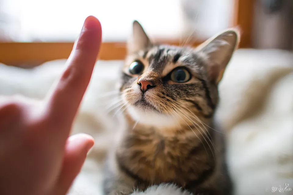 Говорите «нет» твёрдо и уверенно, низким тоном, без крика. Смотрите в глаза. Одновременно мягко прерывайте действие — снимайте кошку с места и относили в другое. Будьте последовательны: всегда одинаковый тон и действие. Не кричите и не пугайте — это вызовет страх и ухудшит доверие.