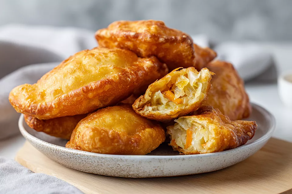 Это классические жареные пирожки с капустой — пышные, мягкие, остаются нежными даже на следующий день. Тесто без яиц, простое и быстрое, а начинка ароматная и сочная.