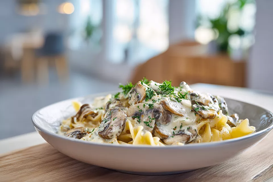 Макароны с грибами в сливочно-сырном соусе: быстро, вкусно и в одной сковороде
