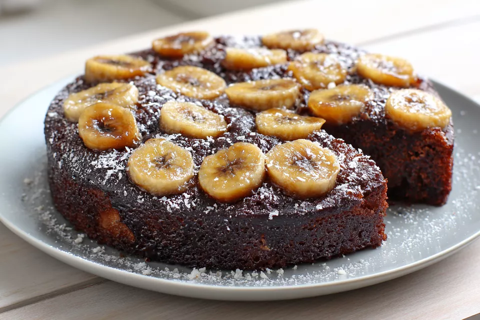 Пирог получается влажным, шоколадным, с карамельными бананами снизу и нежной текстурой. Готовьте с удовольствием — это лучший бюджетный десерт!