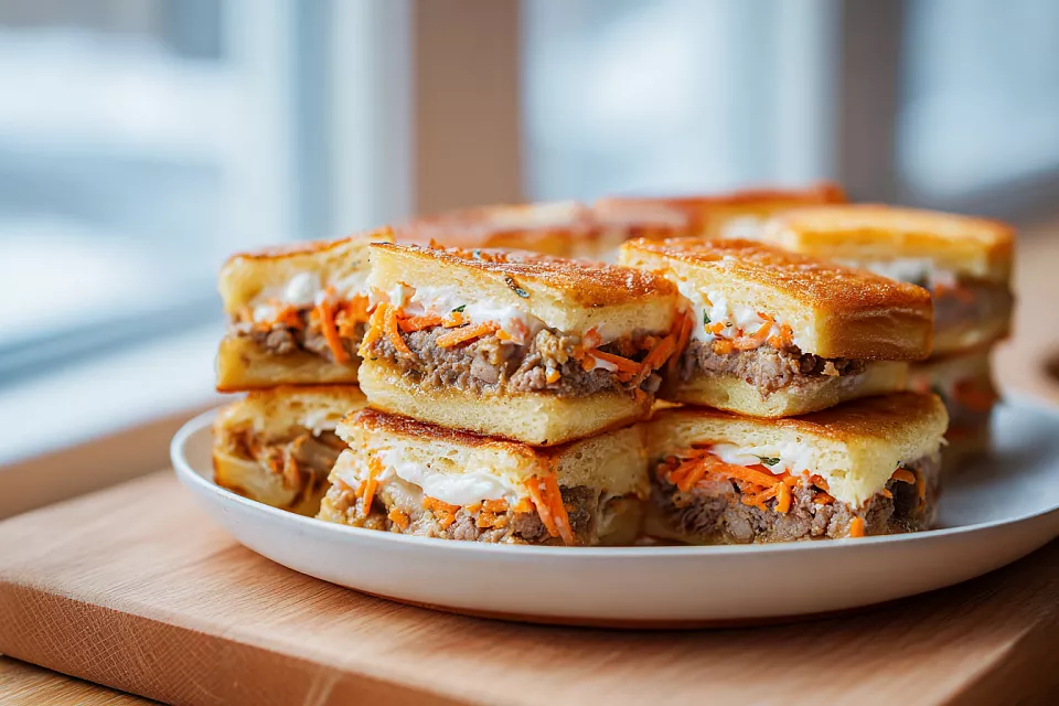 Получаются нежные воздушные оладьи из говяжьей печени с сочной овощной начинкой и домашним майонезом. Такие бутерброды сметали мгновенно — простой, вкусный и очень бюджетный рецепт.