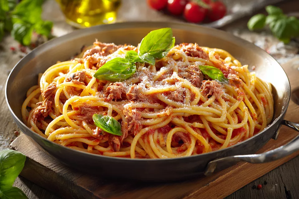 Макароны с тунцом в томатном соусе — сочные, ароматные и готовятся за 15 минут