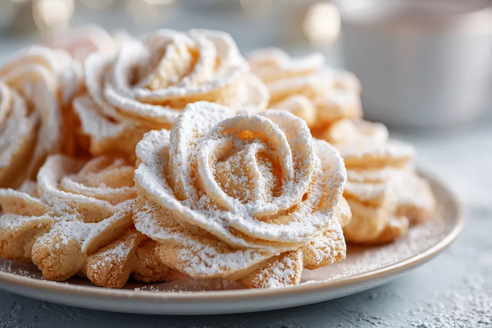 Получается невероятно нежное песочное печенье в форме розочек с воздушной ореховой начинкой. Тесто тает во рту, а меренга с грецкими орехами добавляет хруст и вкус. Рецепт старый, проверенный временем.
