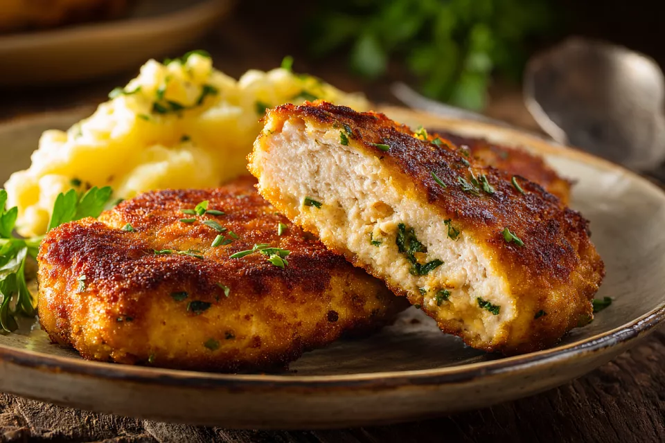 Получаются невероятно сочные и нежные отбивные котлеты из куриного фарша. Снаружи хрустящая панировка, внутри — мягкое, сочное мясо. Готовятся быстро, без лишних хлопот.
