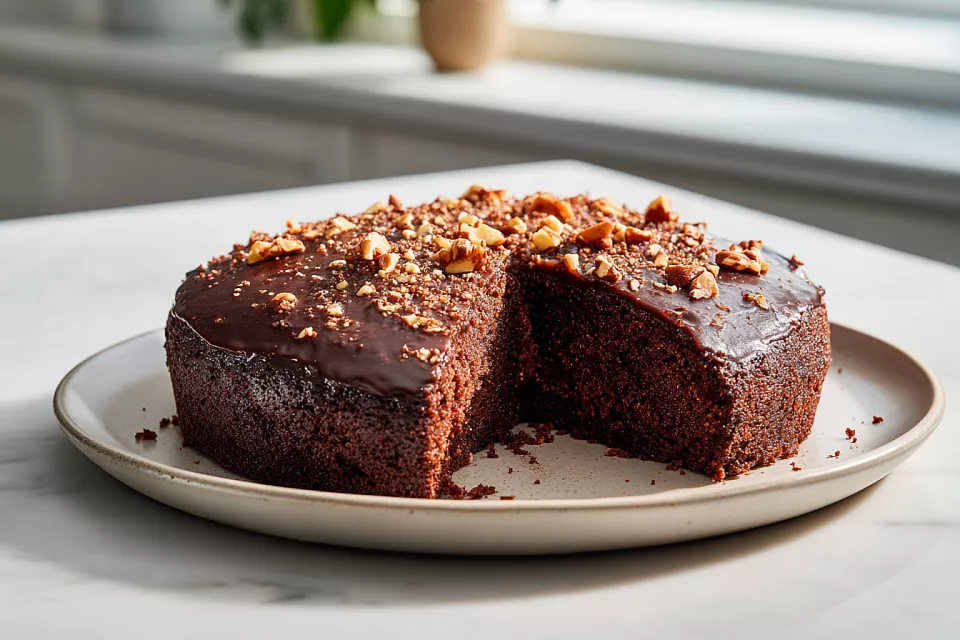 Пирог получается пышным, влажным внутри, с насыщенным шоколадным вкусом. Можно разрезать пополам и промазать сгущёнкой или творожным кремом — станет ещё вкуснее. Идеально к чаю или для гостей.