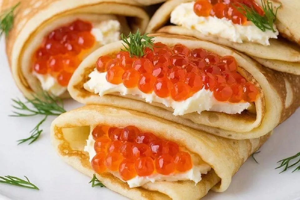 Начинка из слабосоленой рыбки или красной икры сделает блины кулинарным шедевром, от которого не откажется никто из домашних.