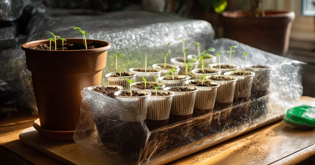 Самый эффективный метод — посев сразу в отдельные стаканчики 200–300 мл с дальнейшей перевалкой. Преимущества: - нет стресса от пикировки; - корни не травмируются; - рост не останавливается; - рассада развивается быстрее. Насыпьте 2–3 см грунта → сделайте лунку → положите 1–2 семечка → присыпьте → слегка уплотните → опрыскайте. Накройте плёнкой → поставьте в тепло (+25–26 °C). Всходы — через 4–7 дней.
