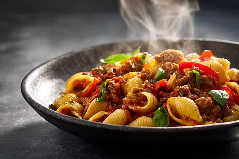 Забудьте про обычный ужин — вот настоящий хит: макароны с фаршем, овощами и специями, всё готовится на одной сковороде.