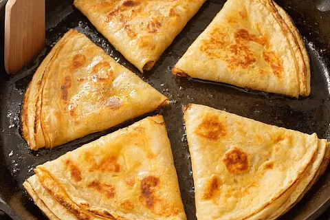 Слоеные лепешки на сковороде, нужны кипяток и мука: слоистые хрустящие — проще не бывает