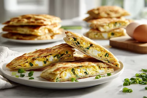 Сегодня готовим простые и невероятно вкусные слоёные лепёшки с начинкой из яиц и зелёного лука. Они получаются хрустящими снаружи и нежными внутри. Можно печь в духовке или жарить на сковороде.