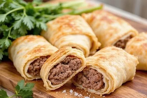 Для рецепта потребуется: два листа тонкого лаваша, 500 граммов мясного фарша, одна луковица для фарша, соль, перец и паприка.