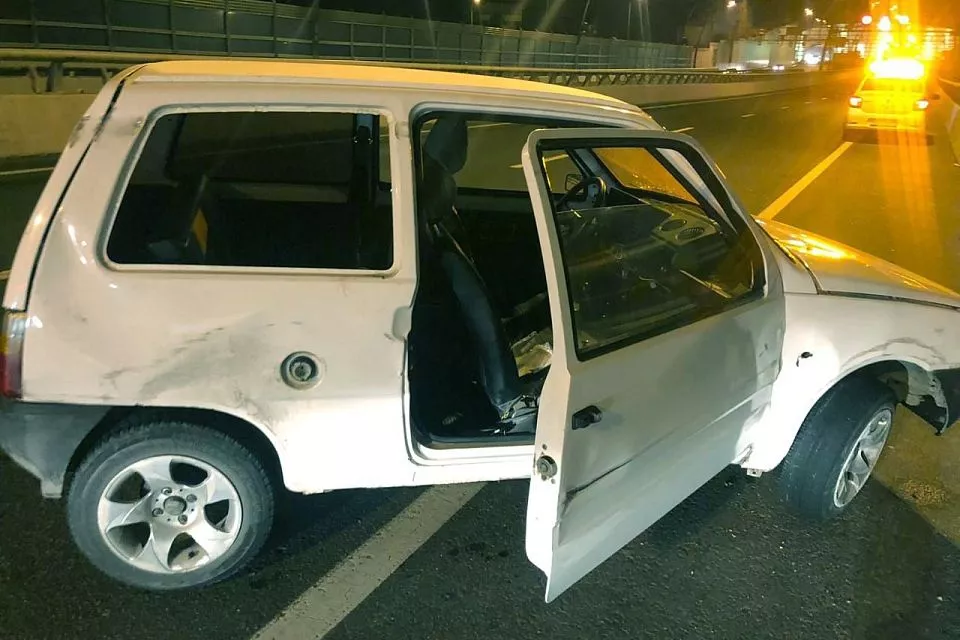 Малолитражка влетела в бетонную стену, расположенную по правую сторону дороги.