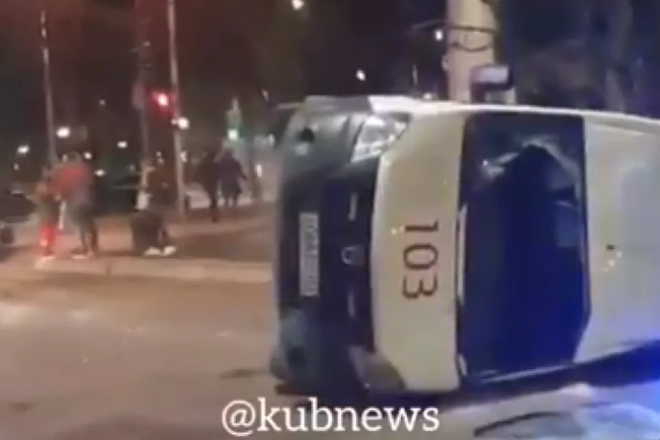 В Краснодаре в перевернувшейся в ДТП карете «скорой помощи» пострадали 2 фельдшера и водитель