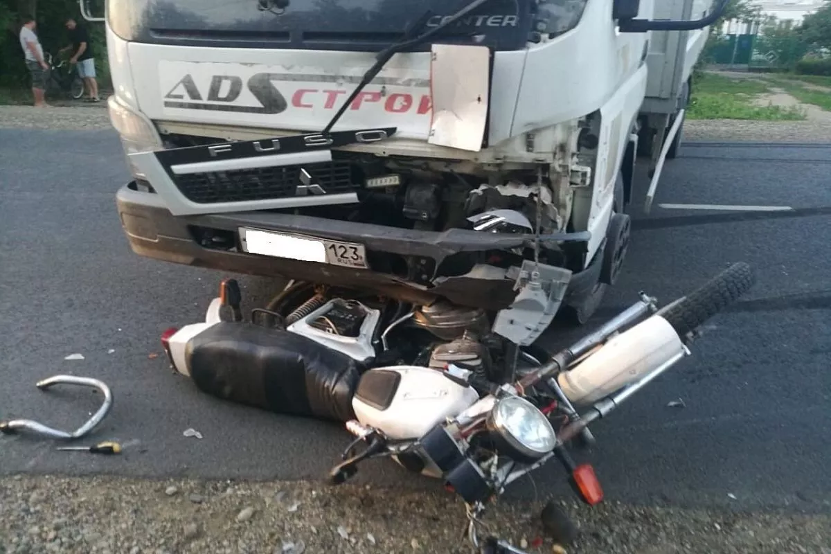По данным источника «Кубанских новостей» в оперативных службах региона, вечером 3 августа 35-летний водитель мотоцикла «Иж», выезжая с прилегающей территории на улицу Гвардейскую, выехал на встречную полосу движения и столкнулся с грузовиком Mitsubishi под управлением 39-летнего мужчины.