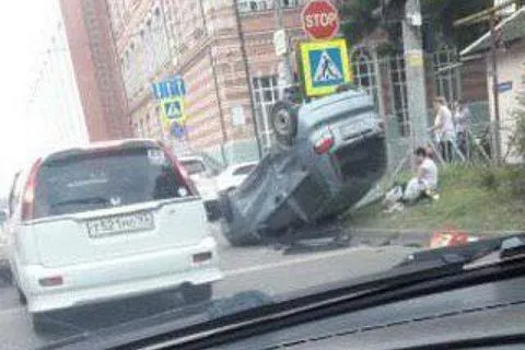 В центре Краснодара в результате ДТП на крышу перевернулся «Дэу Матиз» (видео)
