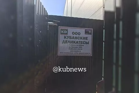 На кадрах видно, что двери на пропускном пункте на завод «Кубанские деликатесы» в Славянске-на-Кубани буквально изрешетили пулями.