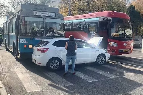 - В 12.10 на перекрестке улиц Орджоникидзе и Октябрьской 37-летняя местная жительница, управляя автомобилем KIA, двигалась по улице Орджоникидзе со стороны Рашпилевской в сторону Кубанонабережной. На перекрестке с улицей Октябрьской она не уступила дорогу имевшему преимущество троллейбусу, в результате чего произошло столкновение с ним, - рассказал «Кубанским новостям» официальный представитель УМВД России по Краснодару Артем Коноваленко.