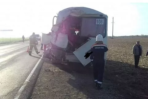 В Краснодарском крае грузовик врезался в пассажирский автобус. Пострадали 4 человека