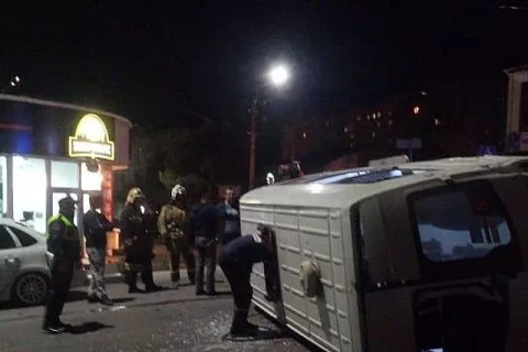 В Новороссийске после столкновения с мусоровозом перевернулась маршрутка с пассажирами