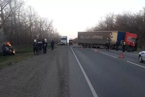 В Краснодарском крае BMW врезался в фуру и загорелся. Водитель погиб