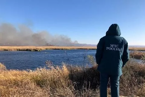 Возгорание камыша в хуторе Чембурка локализовано на площади 1500 кв.м.
